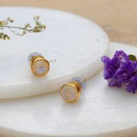 22k Gold-Plated Faceted Rainbow Moonstone Stud Earrings 'Misty World' Item ID: 2671625578