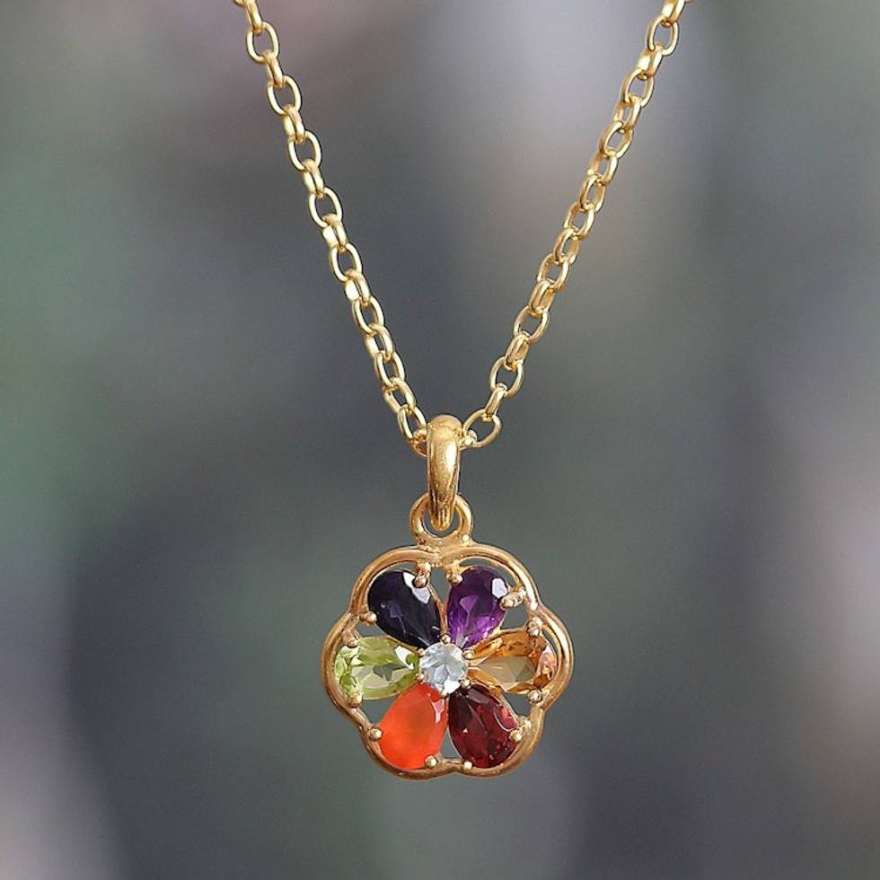 22k Gold-Plated Floral Multi-Gemstone Chakra Necklace 'Golden Energy Bloom' Item ID: 2671783242