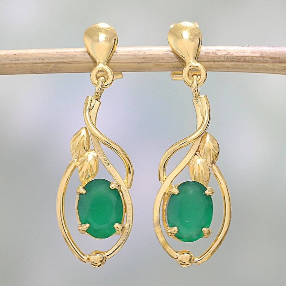 22k Gold Plated Green Onyx Dangle Earrings from India 'Leafy Romance' Item ID: 2671791016