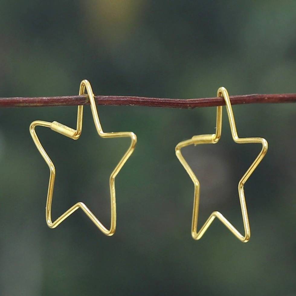 22k Gold-Plated High-Polished Star-Shaped Hoop Earrings 'Honored in the Stars' Item ID: 2671625492
