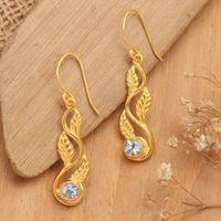 22k Gold-Plated Leafy Blue Topaz Dangle Earrings from Bali 'Vines of Loyalty' Item ID: 2671764790