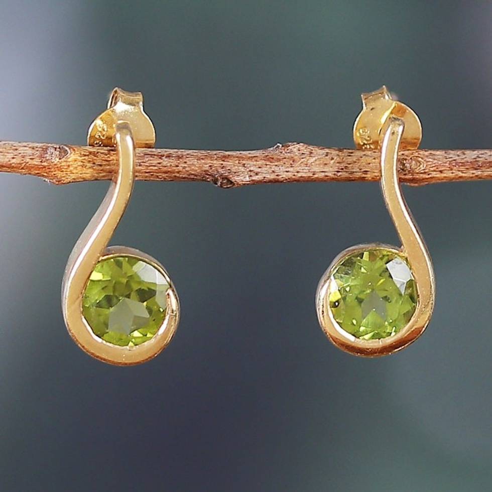 22k Gold-Plated One-Carat Natural Peridot Drop Earrings 'Eden's Lime Droplet' Item ID: 2669924890