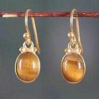 22k Gold-Plated Oval Tiger's Eye Dangle Earrings from India 'Golden Courage' Item ID: 2676664416