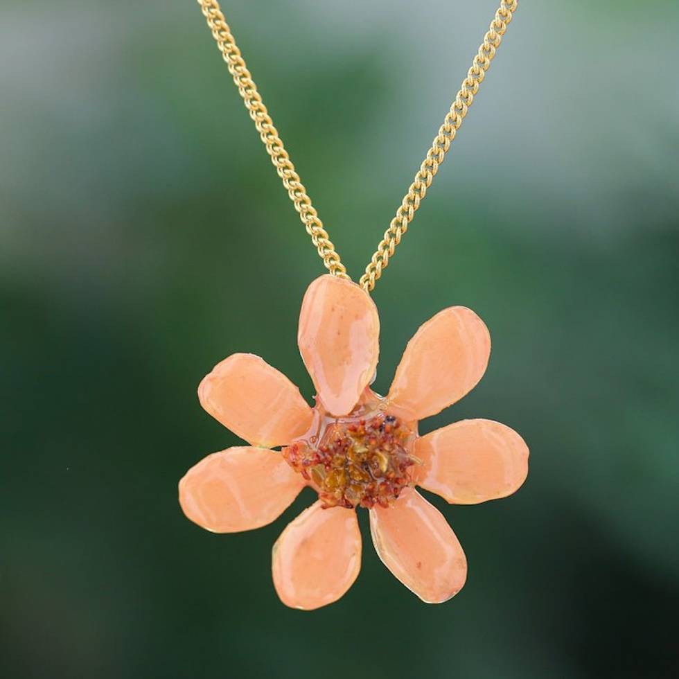 22k Gold Plated Pink Zinnia Flower Pendant from Thailand 'Zinnia Charm in Peach' Item ID: 2669930259