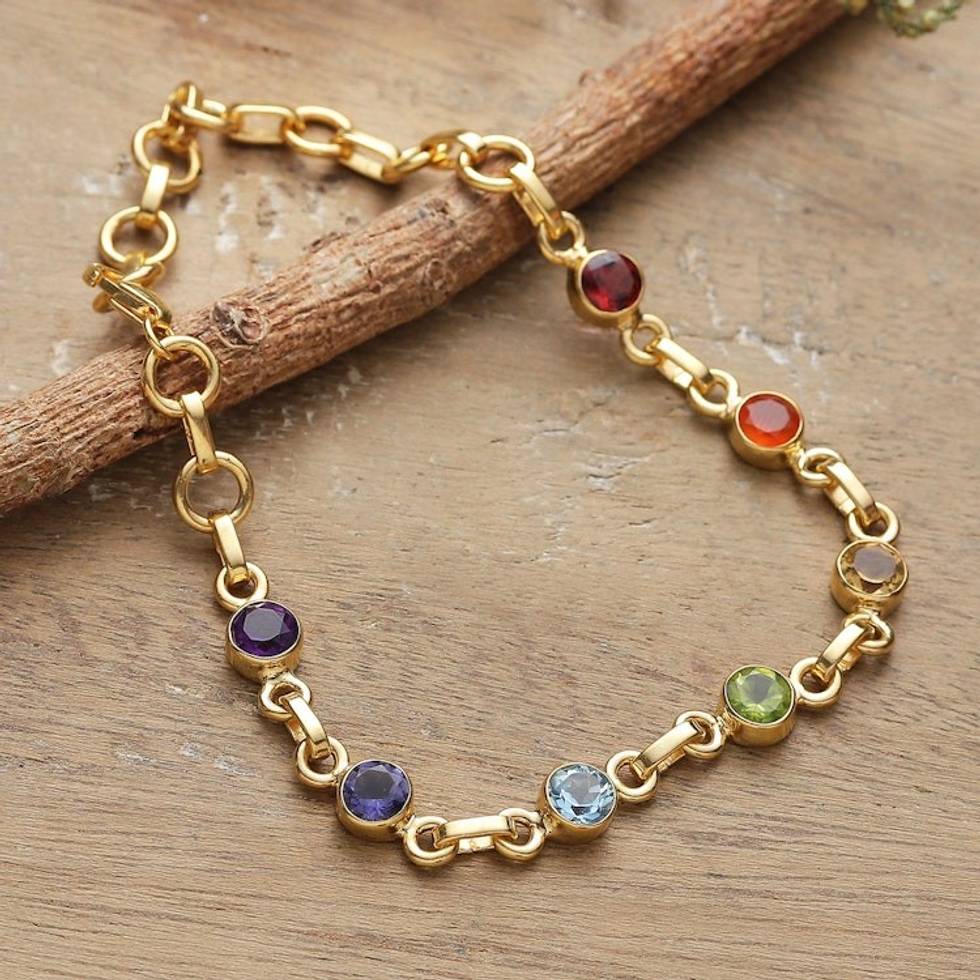 22k Gold-Plated Round Multi-Gemstone Chakra Bracelet 'Inner Universe' Item ID: 2671671006