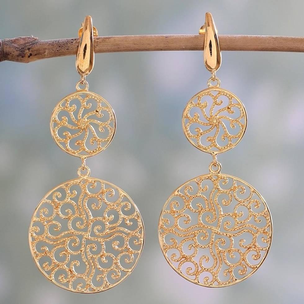 22k Gold Plated Sterling Silver Dangle Earrings from India 'Golden Waves' Item ID: 2671793005