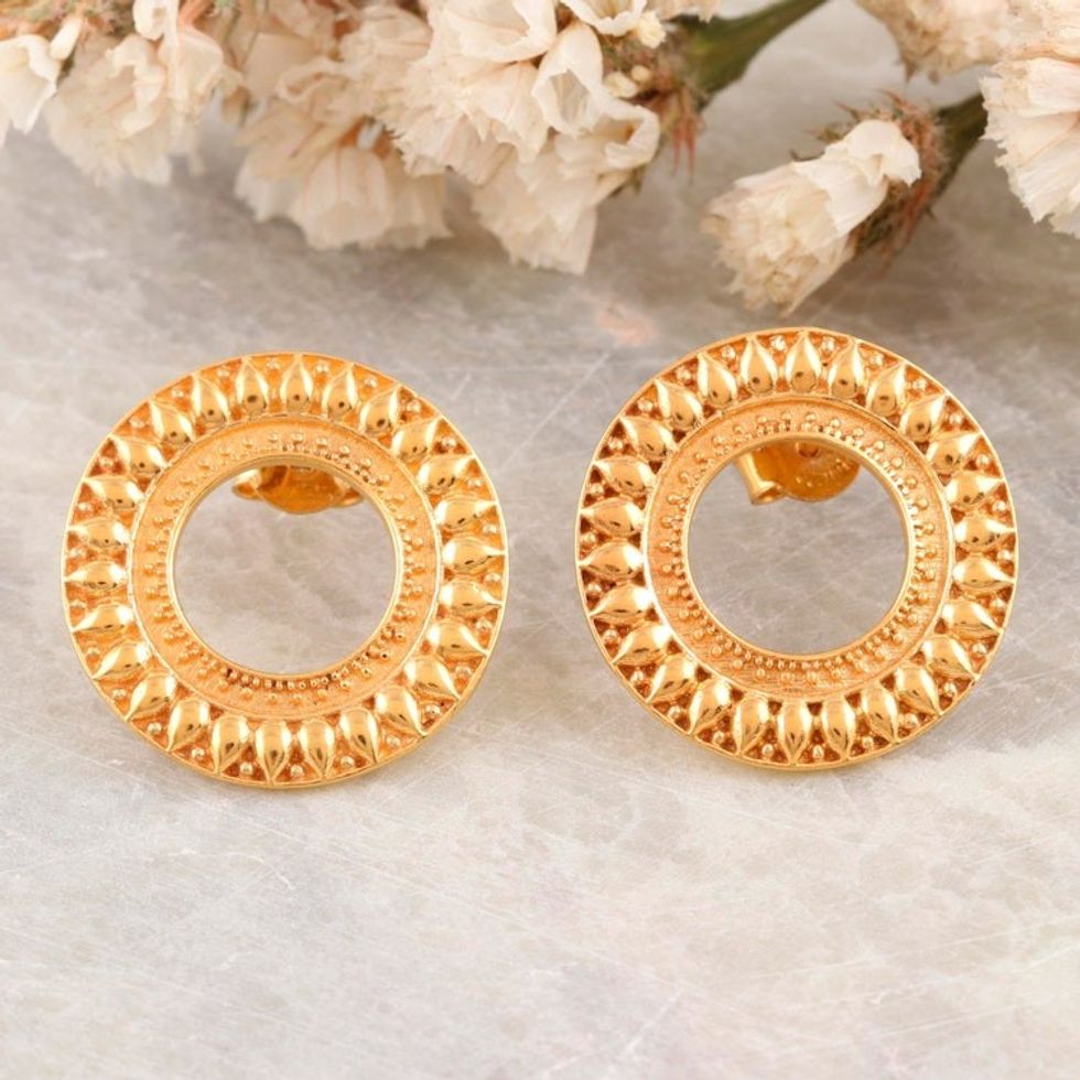 22k Gold-Plated Sterling Silver Drop Earrings with Leaves 'Loop of Leaves' Item ID: 2671787311