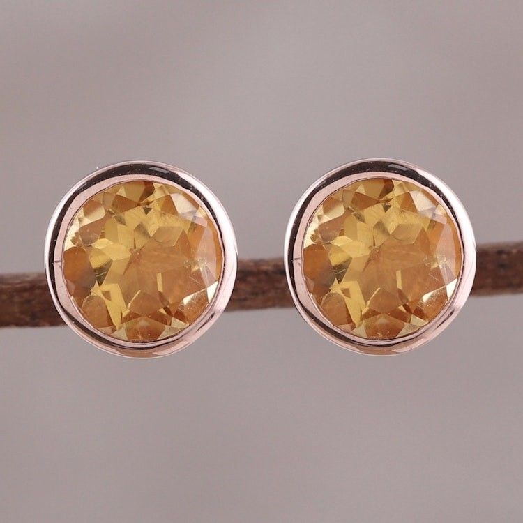 22k Rose Gold Plated Faceted Citrine Stud Earrings 'Sparkling World' Item ID: 2671792474