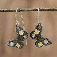 24k Gold Accent Dark Sterling Silver Butterfly Earrings 'Midnight Butterfly' Item ID: 2671777265