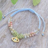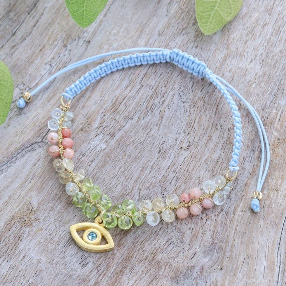 24k Gold-Accented Multi-Gemstone Evil Eye Pendant Bracelet 'Warding Eye' Item ID: 2671646621