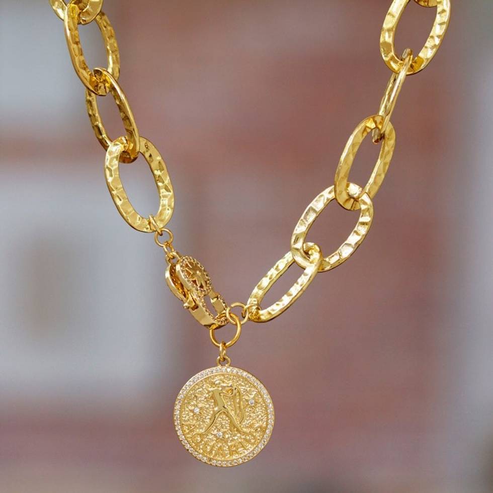 24k Gold-Plated Cubic Zirconia Aquarius Pendant Necklace 'Aquarius Born' Item ID: 2671807433