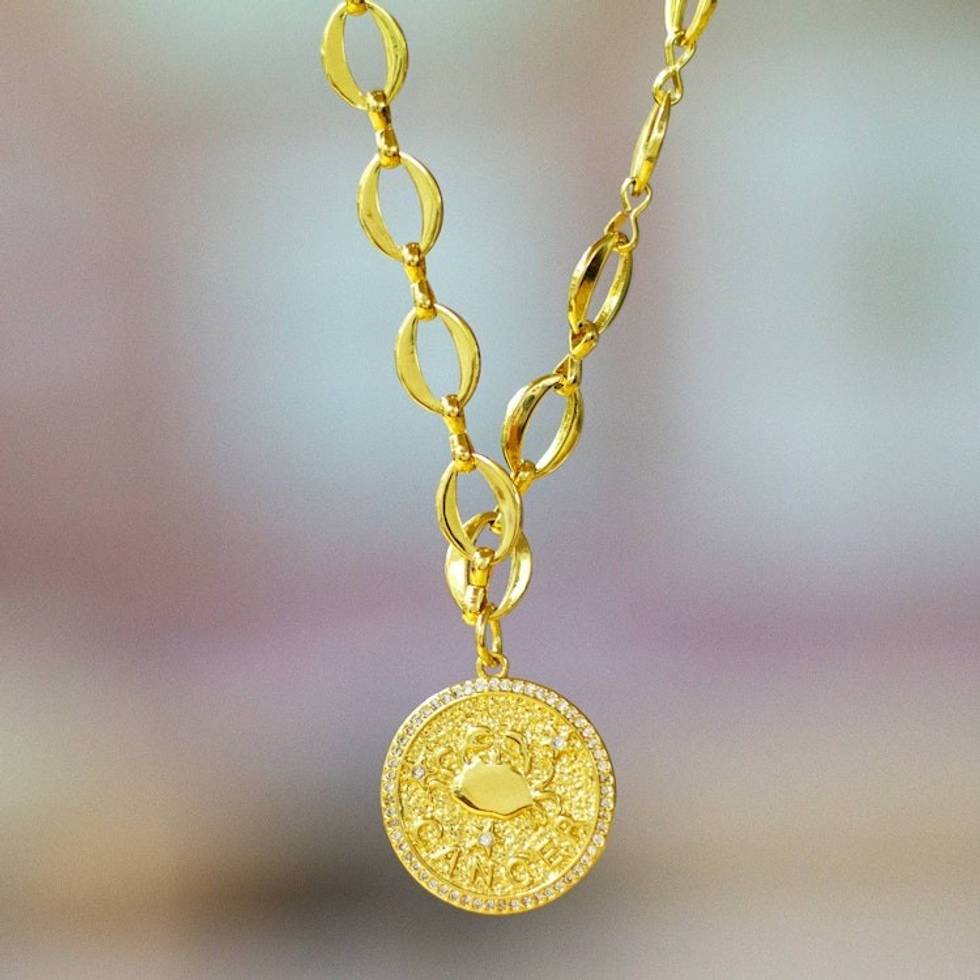 24k Gold-Plated Cubic Zirconia Cancer Sign Pendant Necklace 'Cancer Born' Item ID: 2671807694