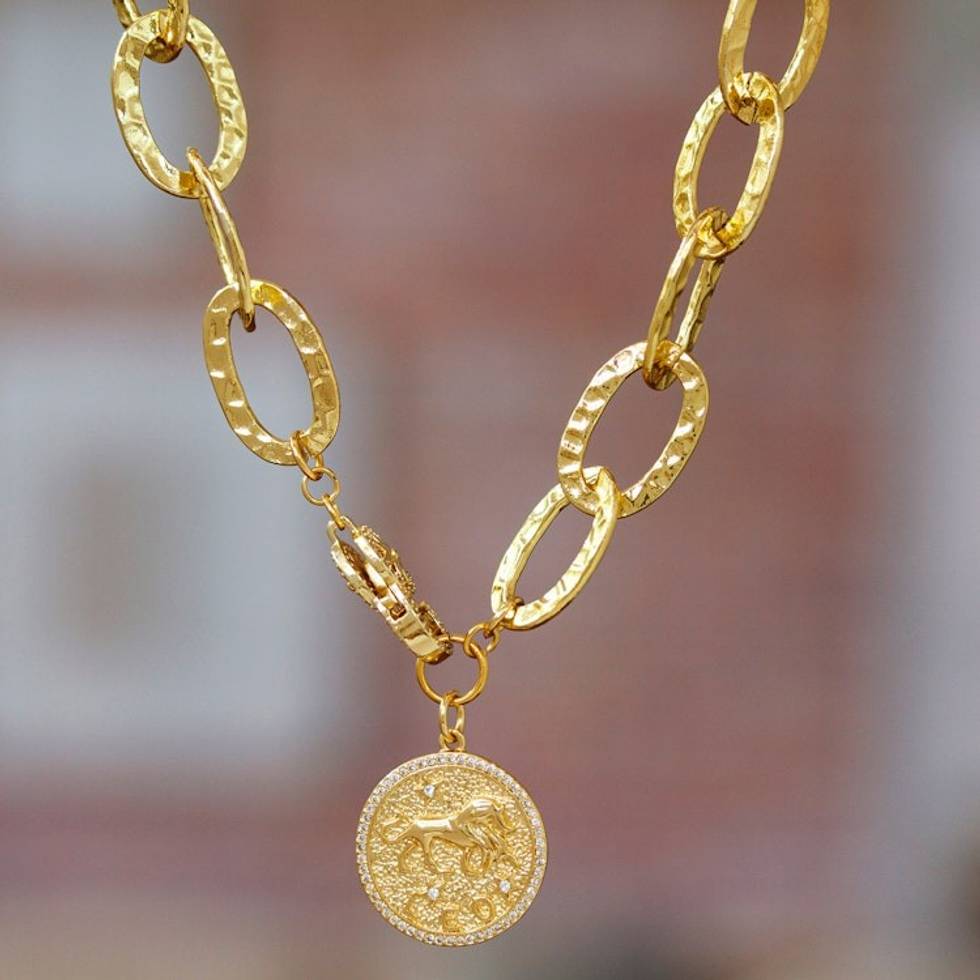24k Gold-Plated Cubic Zirconia Leo Pendant Necklace 'Leo Born' Item ID: 2671807527