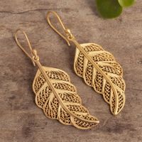 24k Gold-Plated Filigree Leaf Earrings 'Regal Leaves' Item ID: 2671691637