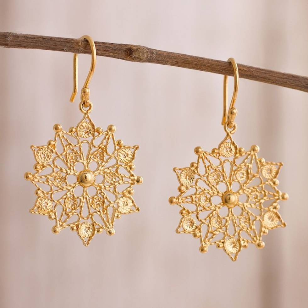 24k Gold Plated Sterling Silver Filigree Dangle Earrings 'Gleaming Mandalas' Item ID: 2671691209