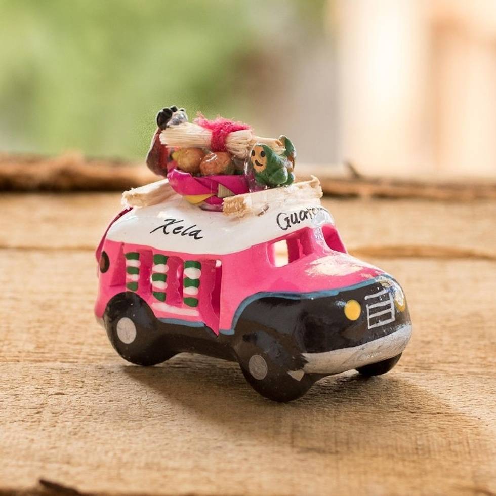 2.5 Inch Pink Ceramic Mini Bus Figurine from Guatemala 'Pink Old Time Bus' Item ID: 2671771708