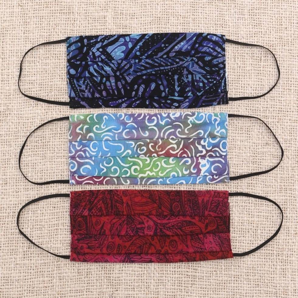 3 Balinese Pleated 2-Layer Rayon Batik Elastic Loop Masks 'Joyous Song' Item ID: 2671745110