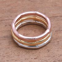 3 Bamboo Motif Rings in Silver, Gold and Rose Gold 'Bamboo Trio' Item ID: 2670122350