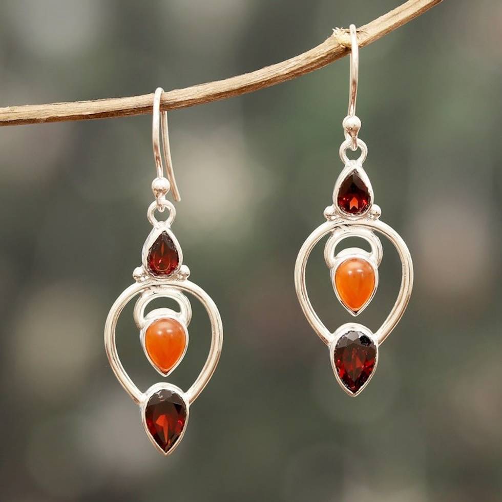 3-Carat Carnelian and Garnet Dangle Earrings from India 'Devoted Fusion' Item ID: 2669924515