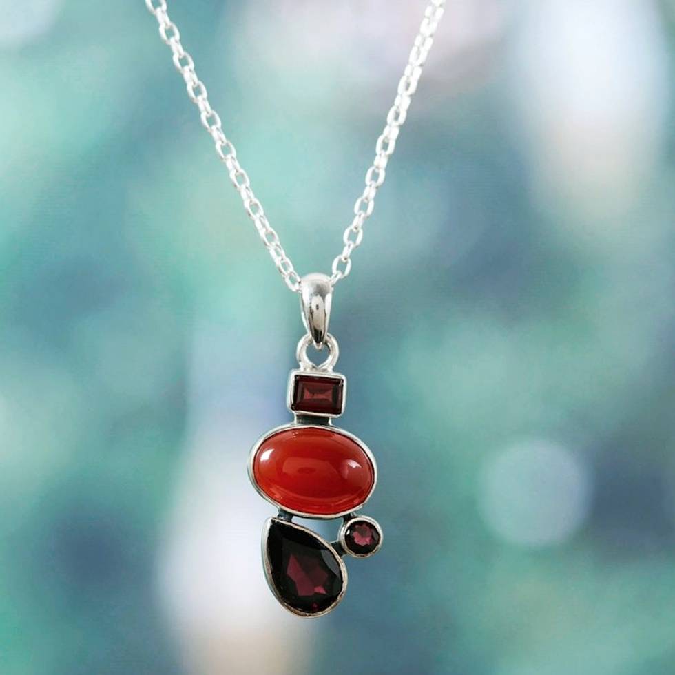 3-Carat Garnet and Natural Carnelian Pendant Necklace 'Crimson Arcadia' Item ID: 2671786901