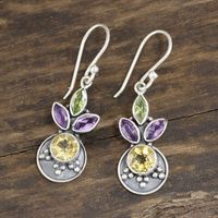 3-Carat Multi-Gemstone Dangle Earrings from India 'Glittering Melody' Item ID: 2669942942