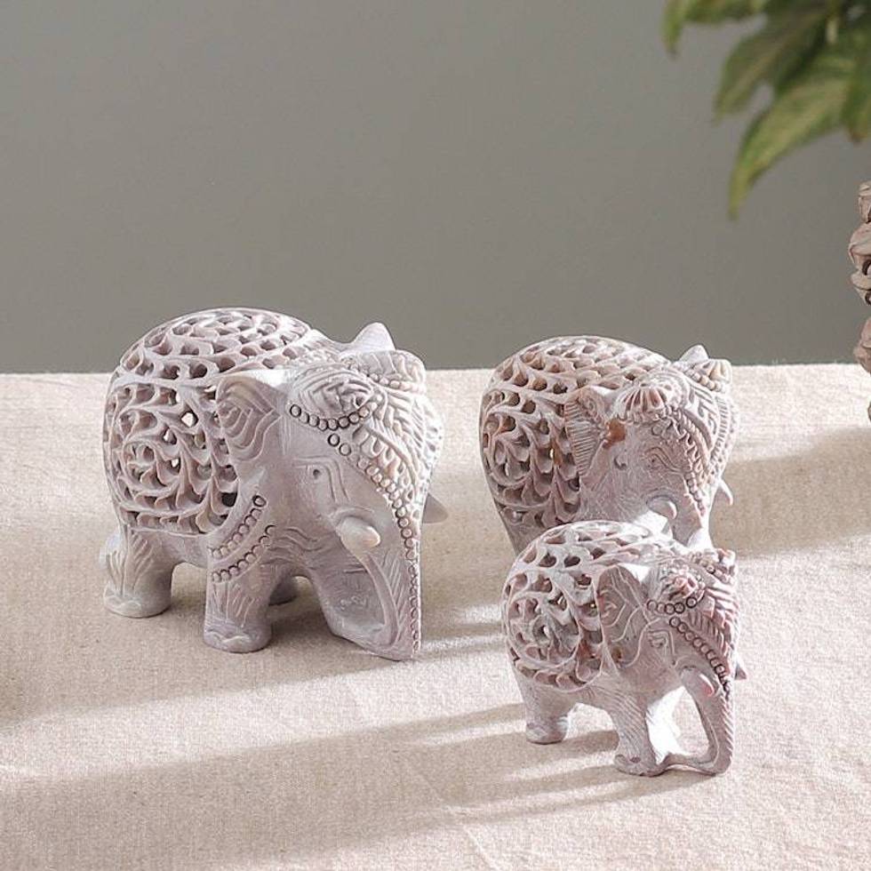 3 Elephant Jali Openwork Hand-Carved Soapstone Figurines 'Royal March' Item ID: 2676665847