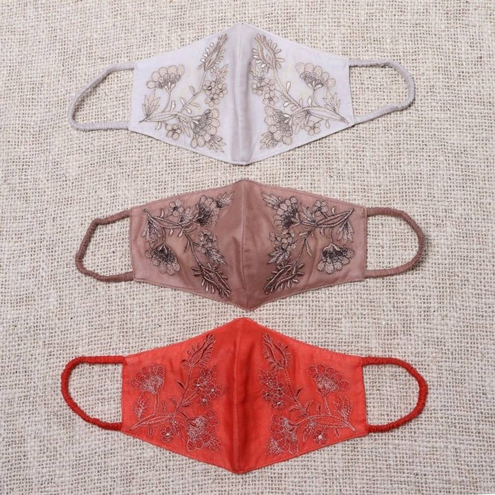 3 Embroidered Floral Cotton Contoured Face Masks 'Warm Blossoms' Item ID: 2671737098