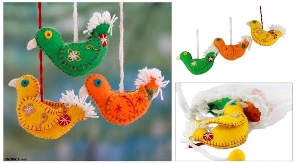 Whimsical and happy 'Feathered Friends' wool ornaments! They are so cute in person I ordered an extra set of two. Thank you!