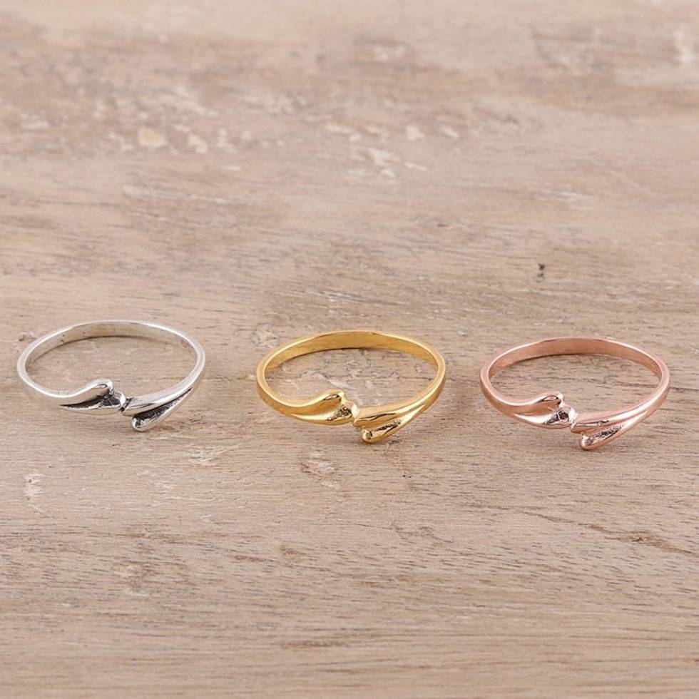 3 Gold, Rose Gold Plated, and Sterling Silver Band Rings 'Dog Bones' Item ID: 2671792530
