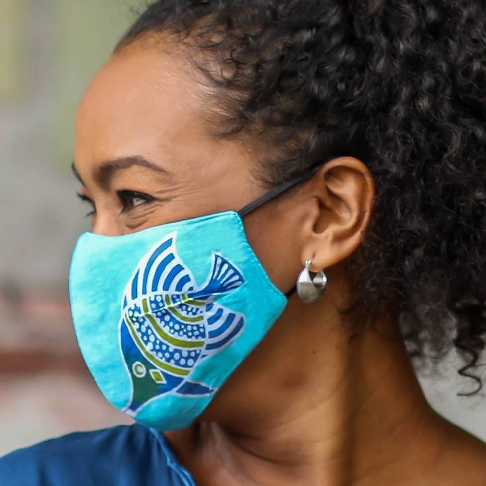 3 Handmade Rayon Batik Fish Cotton 2-Layer Face Masks 'Balinese Fish' Item ID: 2671821015