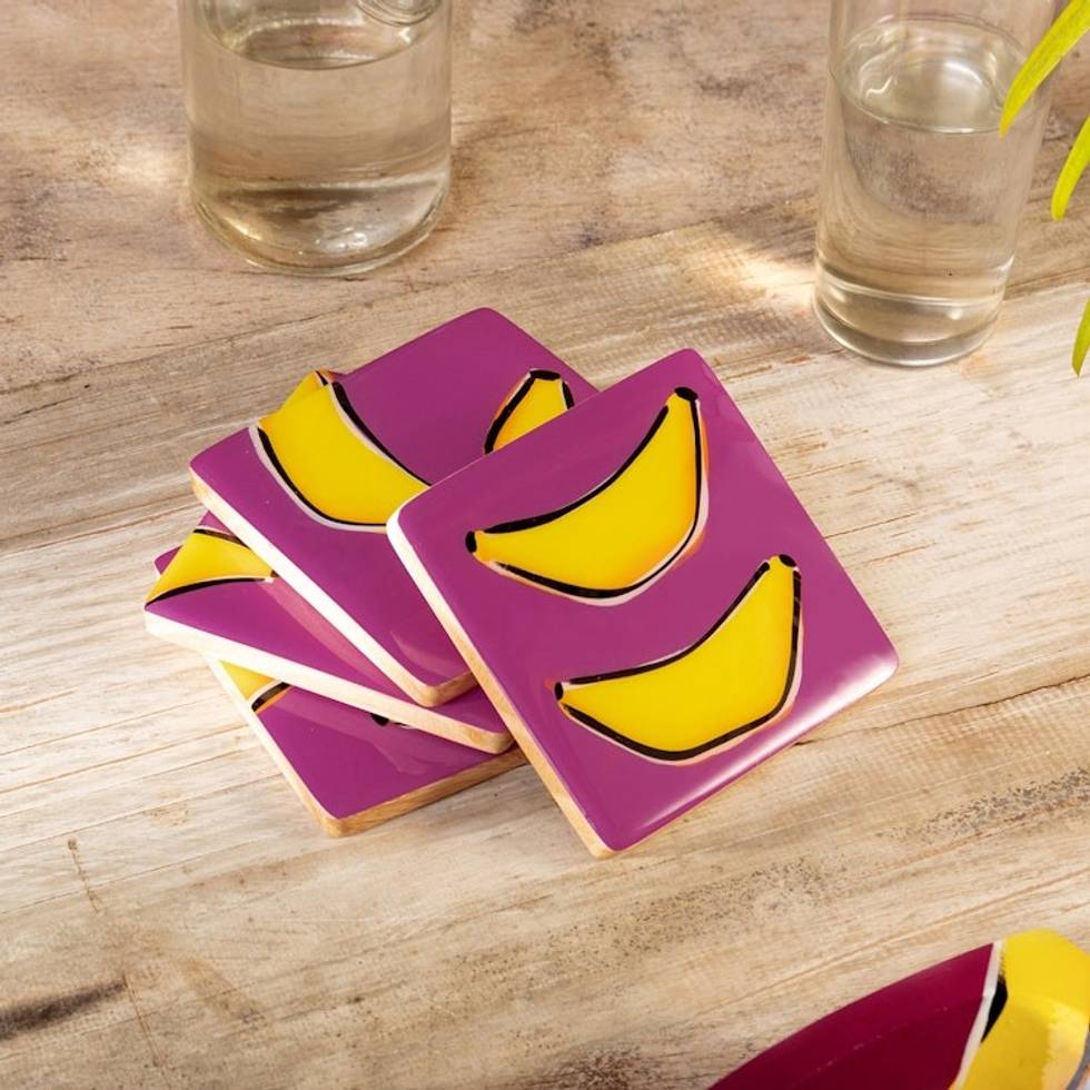 4 Banana-Themed Wood Coasters Hand-Painted in Colombia 'Happy Bananas' Item ID: 2671697985
