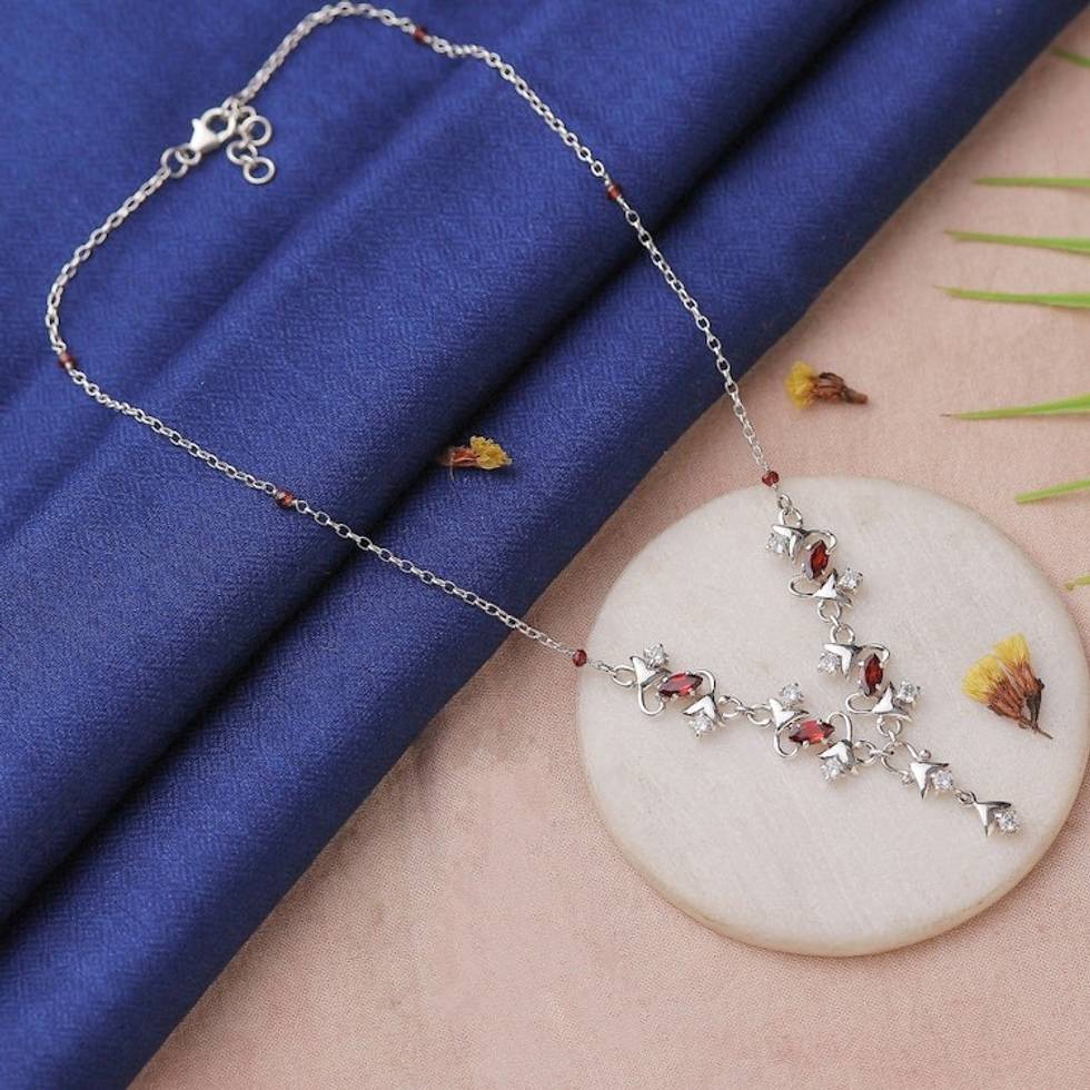 4-Carat Garnet and Cubic Zirconia Y-Necklace Made in India 'Blooming Liaison' Item ID: 2671781328
