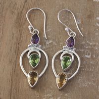 4-Carat Multi-Gemstone Dangle Earrings in a Polished Finish 'Fantasy Fusion' Item ID: 2671625169