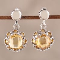 4-Carat Rhodium Plated Citrine Dangle Earrings from India 'Golden Glitter' Item ID: 2671792764
