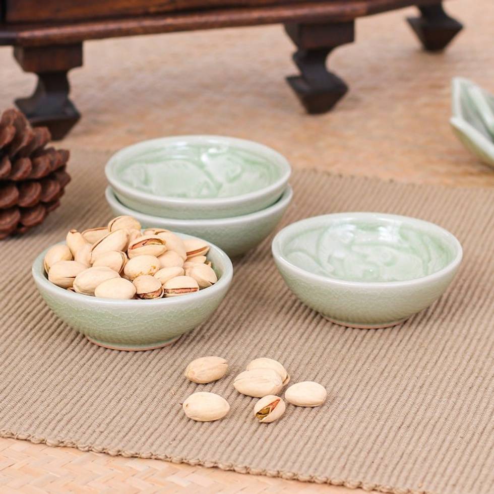 4 Green Celadon Ceramic Elephant Themed Appetizer Bowls 'Elephant Herd' Item ID: 2671797271