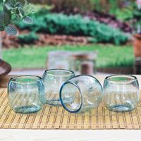4 Hand Blown Recycled Glass Stemless Wine Glasses in Blue 'Social Bliss in Blue' Item ID: 2669897610