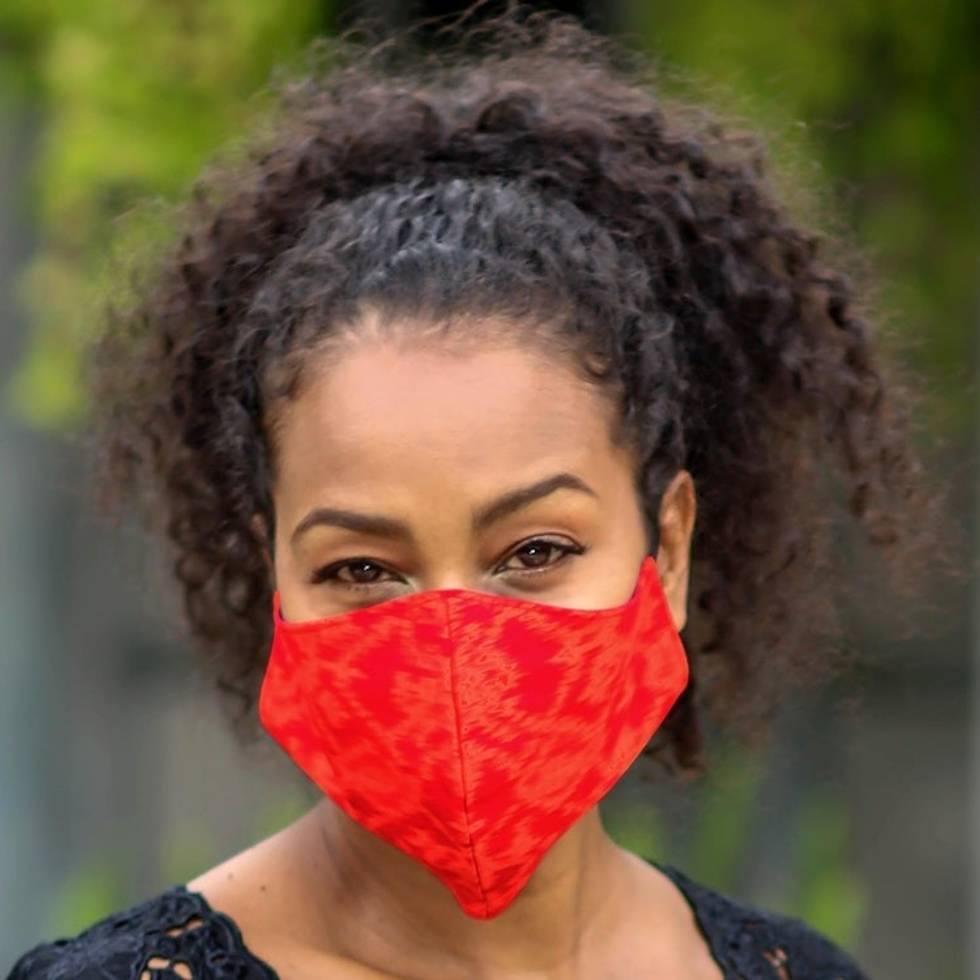 4 Handwoven Red Orange 2-Layer Cotton Ikat Masks 2 Sizes 'Ikat Radiance' Item ID: 2671745817