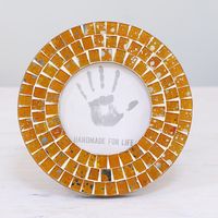 4 Inch Circular Orange Glass Mosaic Photo Frame from India 'Bubbling Memories' Item ID: 2669924997
