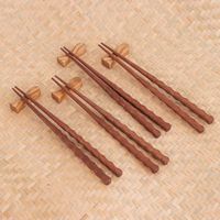 4 Pairs of Teak Wood Chopsticks with Rests from Thailand 'Tasty Meal' Item ID: 2676650655