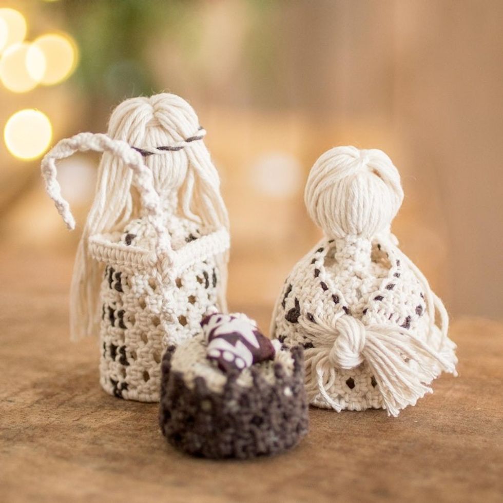 4-Piece Handcrafted Cotton Macram Nativity Scene 'Hopeful Arrival' Item ID: 2669934818