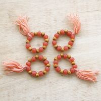 4 Wood and Recycled Glass Beaded Napkin Rings with Tassels 'Ghanaian Hospitality' Item ID: 2671804310