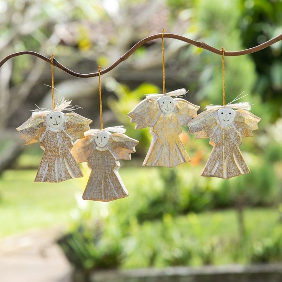 4 Wood Angel Holiday Ornaments with Distressed Finish 'Cheerful Angels' Item ID: 2671764491