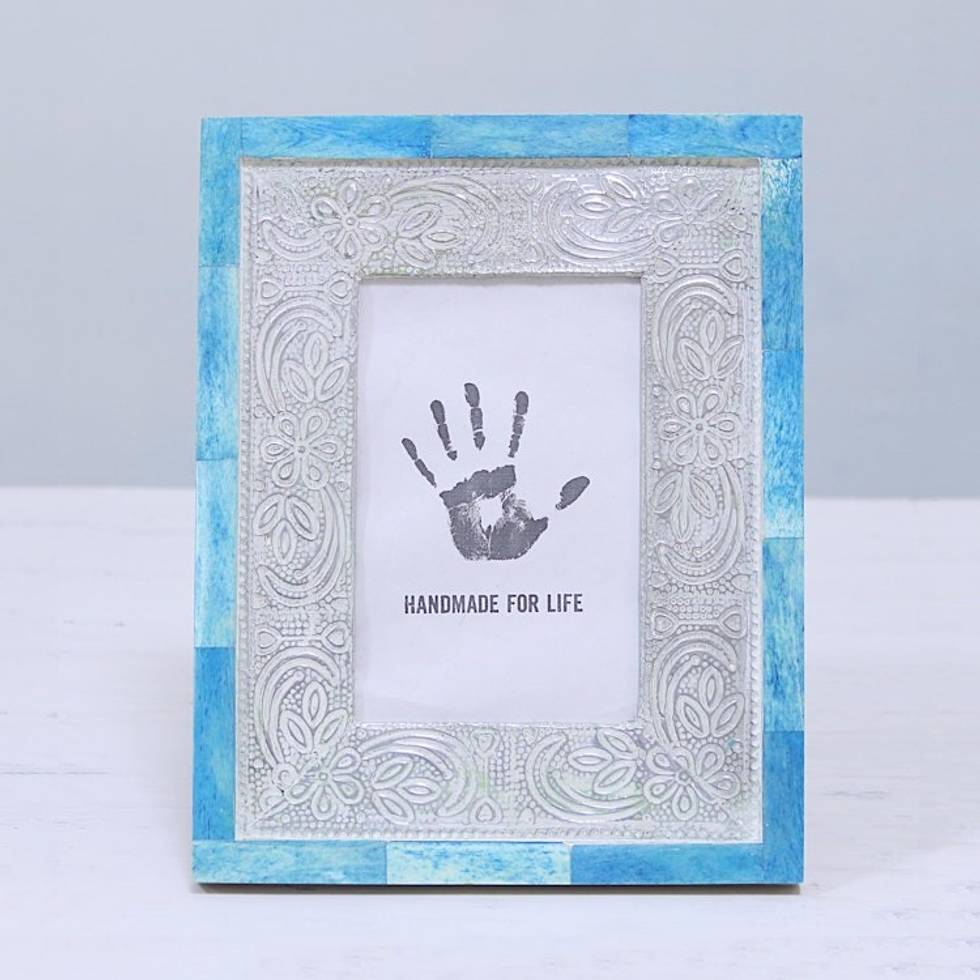 4x6 Handcrafted Bone and Aluminum Photo Frame from India 'Don't Be Blue' Item ID: 2669925375