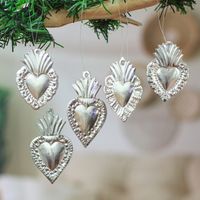 5 Handmade Heart-Shaped Repousse Tin Plated Steel Ornaments 'Petite Hearts' Item ID: 2669897640