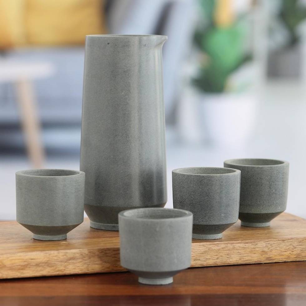 5-Piece Sake Set of Decanter and Cups in Grey From India 'Tokyo Toast' Item ID: 2669892275