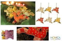 6 Beaded Hand Crafted Christmas Tree Ornaments from India 'Reindeer Gang' Item ID: 2669942984