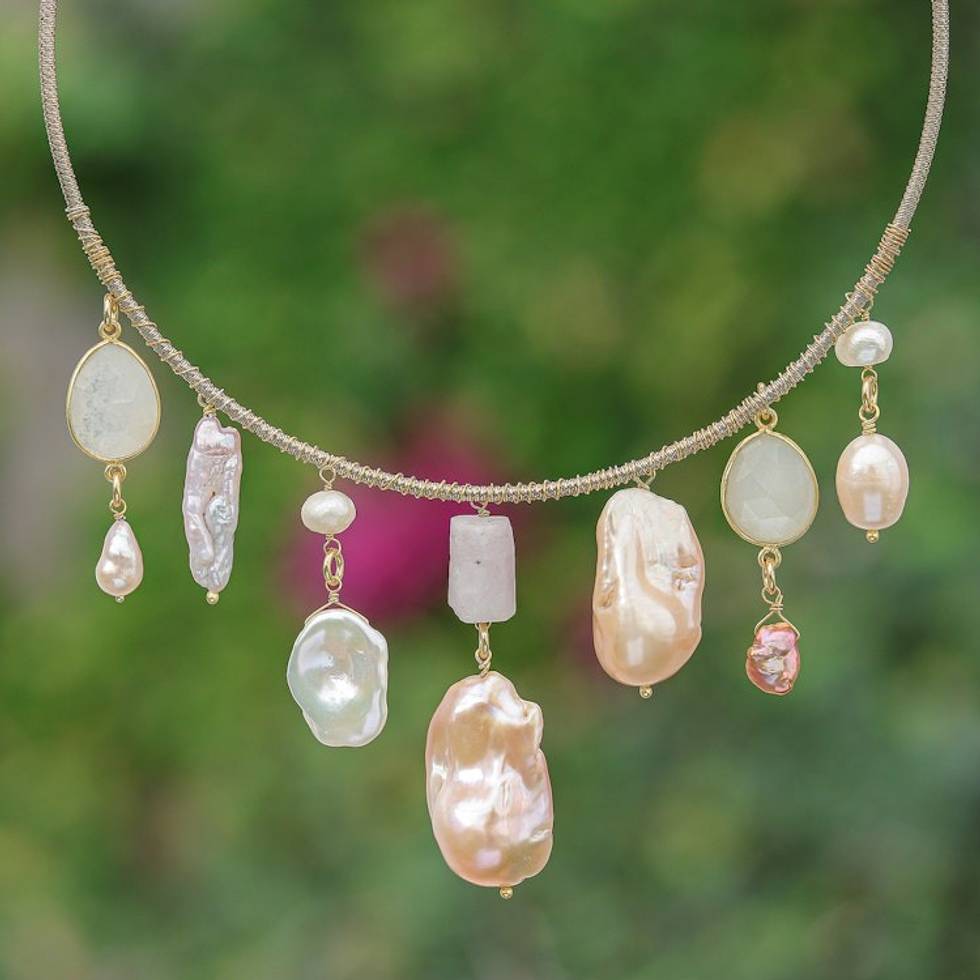 6-Carat 18k Gold-Plated Pink Multi-Gemstone Collar Necklace 'Pop of Pink' Item ID: 2671796742