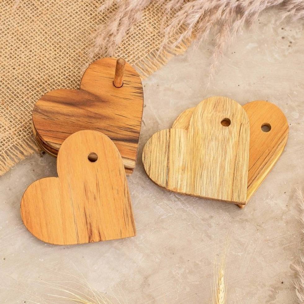 6 Heart-Shaped Teakwood Coasters with Stand from Guatemala 'United by Love' Item ID: 2671769431