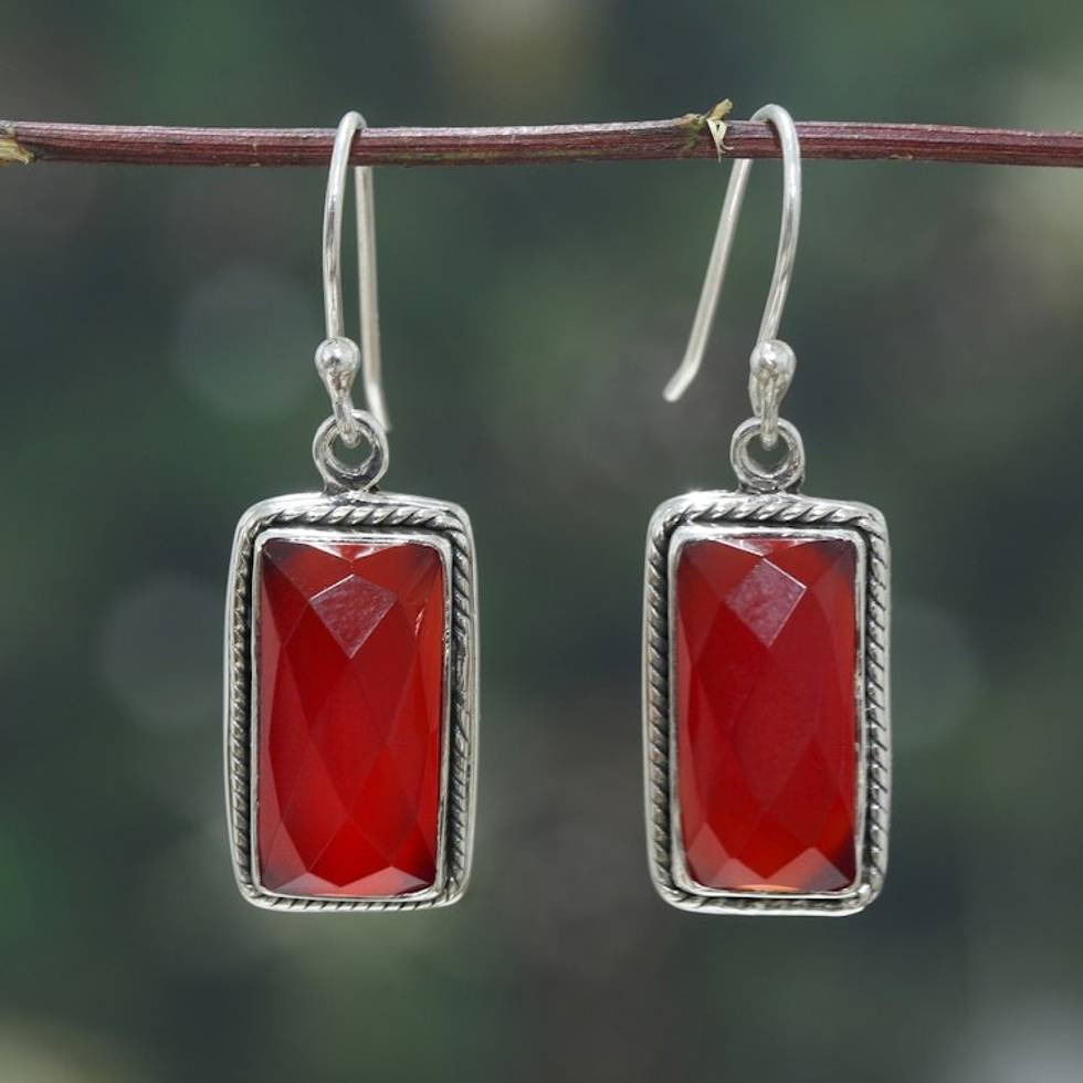 7-Carat Faceted Checkerboard Cut Carnelian Dangle Earrings 'Fiery Portals' Item ID: 2671781361