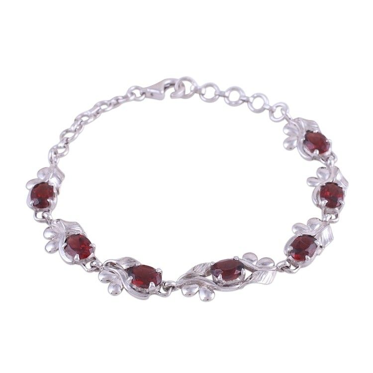 7 Carat Garnet and Rhodium Plated Silver Bracelet 'Eden's Harvest' Item ID: 2671790935